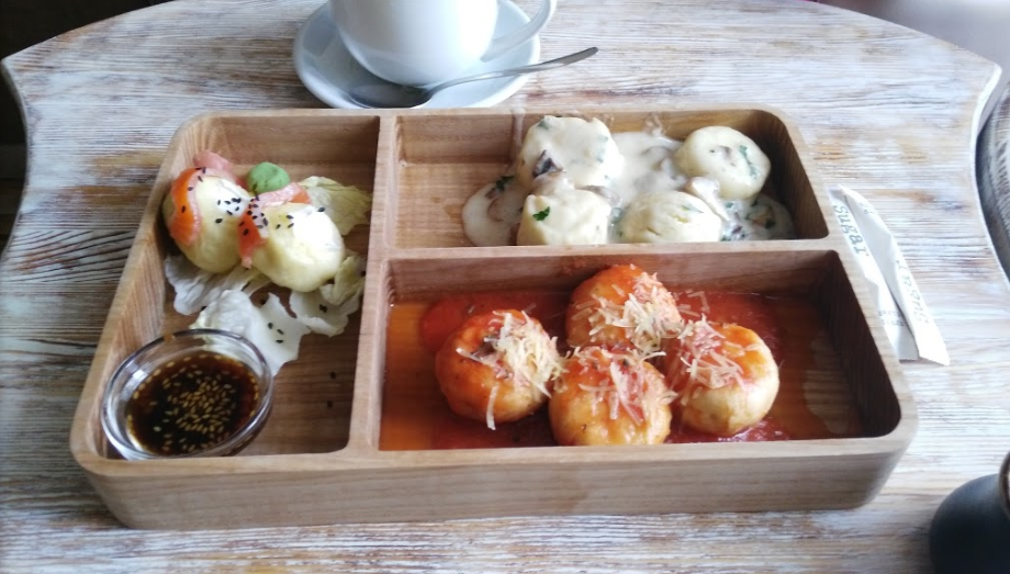 Уютное кафе. Очень вкусные галушки в разных импровизациях.