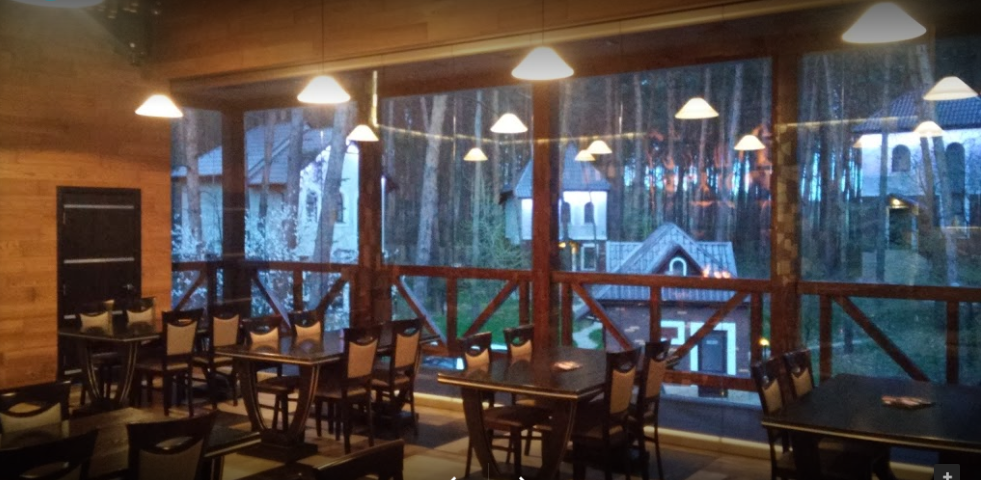 В принципе неплохо. Готовят вкусно, комплекс большой и интересный, в лесу, хорошо пахнет. Из минусов: если присесть за столик далеко от кухни - есть вероятность что вам подадут холодное блюдо, официанты лишний раз ходить не любят.