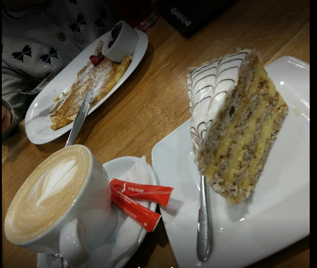 Нямкали с дочерью сладенькое. Она блинчик с джемом и молочный коктейль (не везде зимой делают, тут без проблем), я тортик Эстерхайзи, капучино. Нам понравилось. Дизайн интересный, есть где сфоткаться. Чисто в WC. Решили еще раз с дочкой прийти, пиццу попробовать.