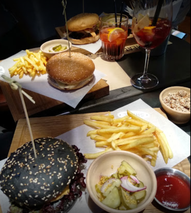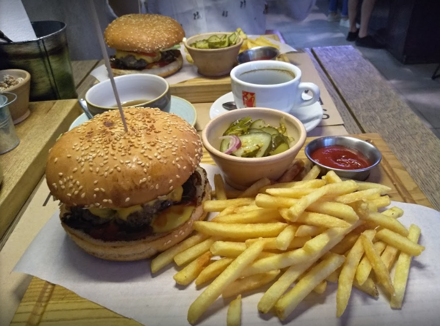 Дизайн бургерной достаточно стильный. Место внутри заведения не много, но все достаточно компактно размещено. Еда, можно сказать, вкусная. Из трёх бургеров: для одного человека бургер оказался самым вкусным из ранее пробуемых вообще, для второго бургер был самым обычным, а третий, как всегда, нашел пережженную булку и что-то ещё, но это никоим образом не помешало всем с успехом доесть свои заказы))