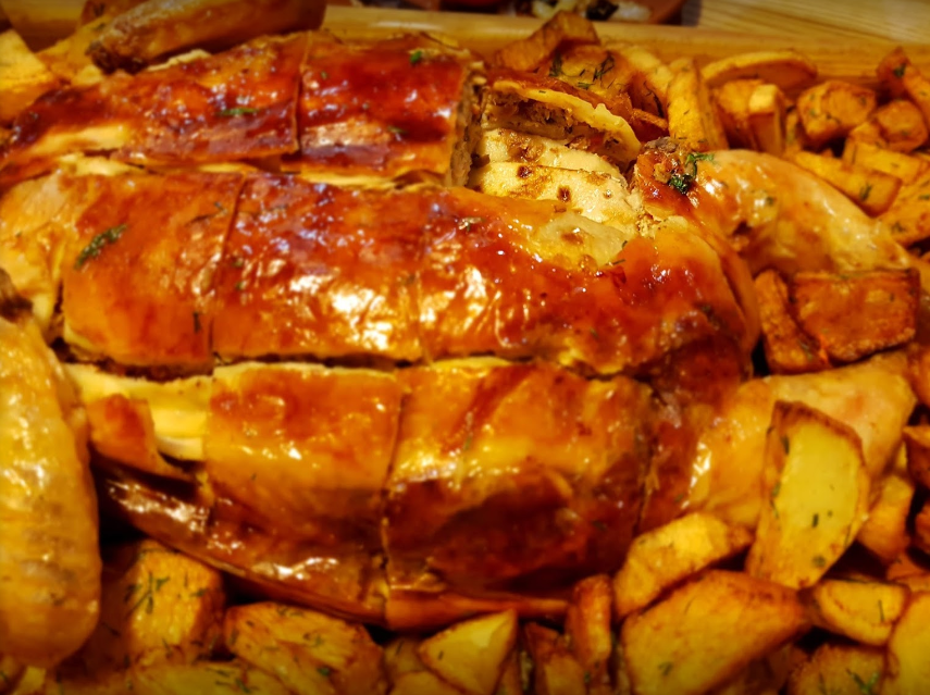 Шашлык хороший, картофляники не очень, деруны были суховаты. Медовуха и хреновуха на высоте.