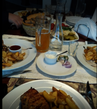 Заказали на обед борщ украинский ... Принесли нечто среднее между бограчем и харчо. Подали к этому хлеб, который крошился в руках. Обслуживала Берлова Лиза.Счет # 70603. На вопрос официанту насчет "борща" ответ - вчера это был борщ!!! Насчет хлеба - "а что вы хотите, это вчерашний!!" Хотя у них своя пекарня и в магазине за стенкой горячий хлеб! Правда потом принесла свежайший. Убило то, что это было высказано прямо в глаза в полном спокойствии и уверенности в себе и своих действиях. Я был в шоке! Галушки с курицей , юшка грибная были неплохие. В целом осадочек неприятный остался, больше к вам не приеду.